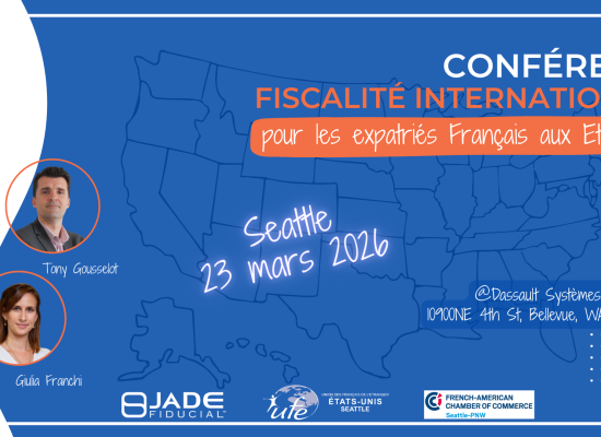 Conférence – La fiscalité Franco-Américaine par le partenaire de l’UFE Jade FIducial. Lundi 23 mars à 18h.