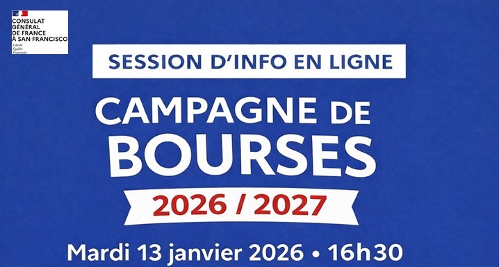 L’équipe du Consulat général de France à San Francisco organise une session d’information le mardi 13 janvier, de 16h30 à 17h30 PST, via Zoom: https://go.ufeseattle.org/bourses-2026-webinaire